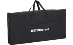 Durch die spezielle Falttechnik mit nur wenigen Handgriffen einsatzbereit. Besonders robuste, langlebige Konstruktion, die auch sehr häufigen Auf- und Abbau unbeschadet übersteht. Die Ablage ist spritzwassergeschützt, Staunässe an der Hartfaserplatte ist zu vermeiden.