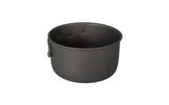Ein komplettes und geräumiges 3-teiliges leichtes Kochset. Bestehend aus 2 Kochtöpfen und einer Bratpfanne. Ideal für den Einsatz im Freien geeignet. Das Set ist mit hitzebeständigen und klappbaren Griffen aus Silikon ausgestattet. Hergestellt aus massivem, hart eloxiertem Aluminium, so dass die Gefahr des Anbrennens verringert wird. Geeignet für Gas- und Benzinbrenner. Die Pfannen sind stapelbar und somit kompakt zu lagern und zu transportieren, inklusive Tragetasche.