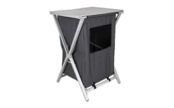 Ein sehr kompakter Koch-/Lagerschrank. Einfacher Aufbau durch das „easy to fold“-System. Ausgestattet mit einem luxuriösen 2-farbigen 600 Denier Polyesterbezug, der ein praktisches Regal und ein Lüftungsfenster enthält. Die verstellbaren Beine sind individuell einstellbar, so dass der Schrank auf jeder Oberfläche stabil steht.