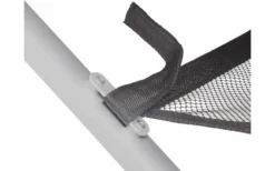 Aluminiumtisch mit Rollplatte und speziellem, einfach zu montierendem Klapprahmen. Rolltischplatte mit silber eloxierten Lamellen (Gapless-System). Sehr stabiler Rahmen aus Aluminium-Vierkantrohren und zentraler Stabilisierungsstange. Mit praktischer Netzablage und Transporttasche (100 % Polyester) mit 2 separaten Fächern.