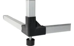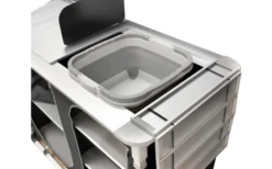 Praktische Campingküche mit integrierter, herausnehmbarer Faltspüle und 2 großen Staufächern mit viel Platz für Lebensmittel und Kochutensilien. Mit großer Alu-Rollplate und höhenverstellbaren Standbeinen. Äußerst stabile Ausführung dank Verwendung von verwindungssteifen Rechteckprofilen. Einfache, schnelle Montage. Arbeitshöhe: 90 cm. Die Lieferung umfasst einen Wind- und Spritzschutz, sowie eine praktische Packtasche.