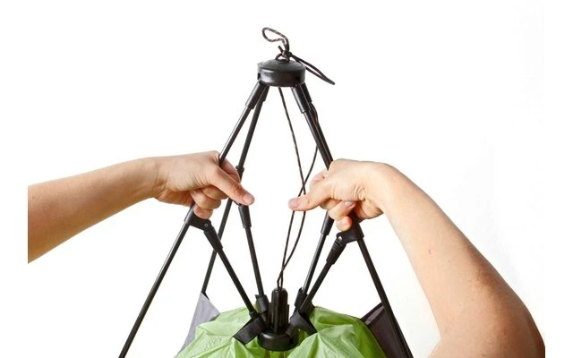 Automatik-Igluzelt für 2 Personen. Dank spezieller Seilzugtechnik sekundenschnell aufgebaut und einsatzbereit. Das Abbauen braucht unwesentlich länger. Einzeldachausführung mit großer RV-Tür. Inkl. Heringe und Packsack.