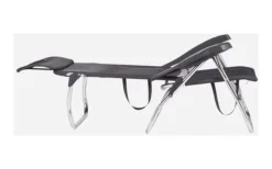 Dabei gibt die gewölbte Oberkante Halt am Boden. Dieser Strandstuhl ist mit bequemen Armlehnen ausgerüstet. Er ist durch die Tragelaschen und das geringe Gewicht leicht zu transportieren.