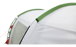 Das Palmdale 300 ist ideal für eine kleine Familie und bietet drei Personen in einer großen Schlafkabine bequem Platz. Mit farbcodierten Glasfaserstangen und Stangenkanälen lässt sich das Zelt schnell und einfach aufbauen. Eine eingenähte Bodenplane verhindert Zugluft, während die großzügigen Doppelfenster im Wohnbereich viel Licht hereinlassen. Das tiefe Vordach über der Eingangstür mit Insektenschutzgitter und Fenstern bietet zusätzlichen Schutz für den Zugang, das Kochen und das Abstellen von Fahrrädern.