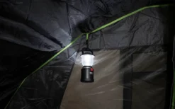 Abgedunkeltes Innenzelt mit Vario Vent Control System. 2 Moskitonetz-Eingänge halten lästige Plagegeister fern und kann bequem von innen je nach Klima variabel bedient werden. Mit einer Reißschluss- Trennwand lässt sich das Innenzelt in eine große Kabine oder 2 Schlafbereiche aufteilten. 5 Praktische Organizer und 5 Innenzelttaschen für Utensilien. 2 Lampenhalter für Campingleuchten runden den Komfort ab.