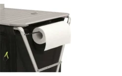 Der durchdachte Küchentisch Richmond zeichnet sich durch ein stabiles Aluminiumgestell und einen schwarzen Bezug mit Prägemuster aus. Die Tischplatte besteht ebenfalls aus Aluminium. Der Küchentisch Richmond umfasst ein zusammenklappbares Waschbecken, das über die Tischplatte leicht zugänglich ist.