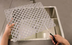 Die Spülbeckenmatte Spacewonder mit dem wirkungsvollen Design schützt Ihre Spüle und das Geschirr vor Kratzern und Sprüngen. Falls gewünscht, kann sie mit der Schere zugeschnitten werden.